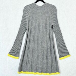 Anthropologie Sweater Dress Womens Small Gray Yellow Rib Knit Bell Sleeves