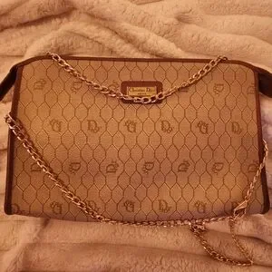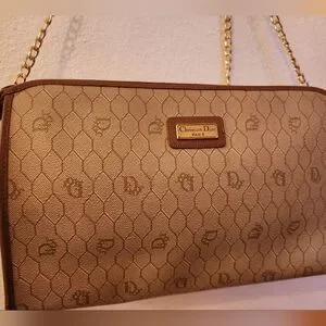 christian dior bag with aftermarket chain. PVC material. slight rubs on corners, overall very clean and in good condition. see photos for how chain is threaded in.