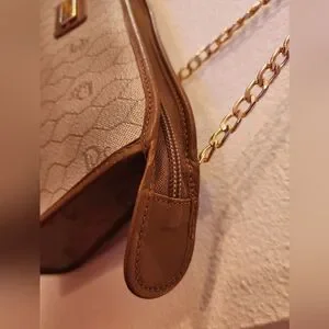 the chain is not attached to bag, but threaded through it to be used as a shoulder bag