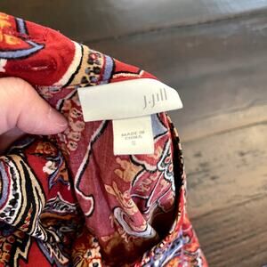 J.Jill Sheath Mock Neck Red Paisley Print Rayon Dress Sleeveless Size Small