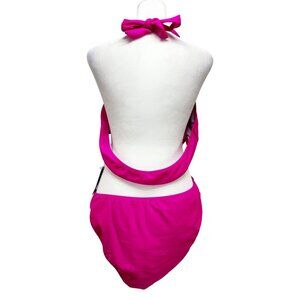 Hot Pink Cutout One-Piece Swimsuit Gold Ring Halter Neck Tie Size XXL New