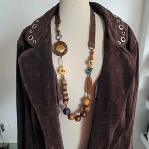 Live a Little Genuine Leather Suede Vintage Boho Hippie Jacket w/Grommets (Size: