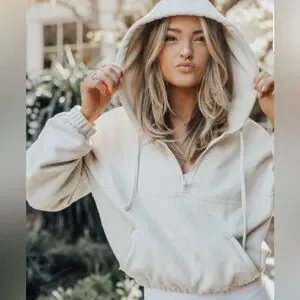 Experience ultimate comfort and style with the ALO Yoga Cream Cropped Hoodie Sweater. This sweater features a soft, fleece-like texture and a relaxed fit, making it perfect for casual outings. The cowl neck adds a touch of elegance to its versatile design.