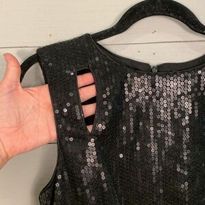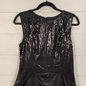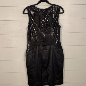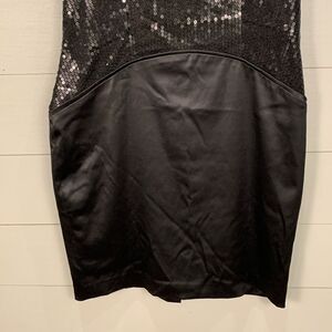Vince Camuto little black holiday dress sequins black satin skirt size 10