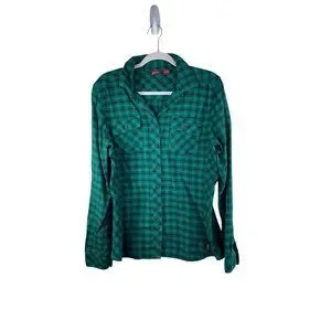 This Eastern Mountain Sports Flannel in green is perfect for winter grunge style. Designed for utility and outdoor activities, it offers comfort, warmth, and durability.