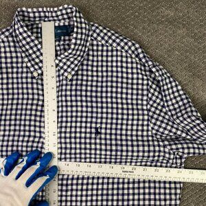 Vintage Ralph Lauren Linen Shirt Men's XL Blue White Gingham Check Button Down