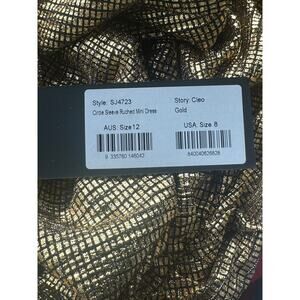 Shona Joy Cleo Circle Sleeve Ruched Mini Dress Womens 8 Gold Metallic Crepe