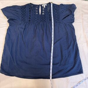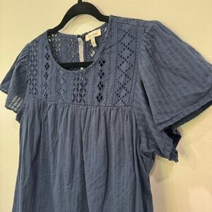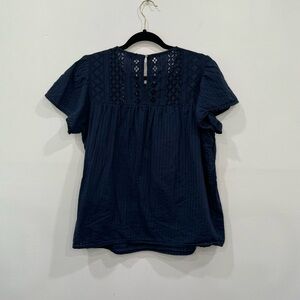 ELLA MOSS Brianne Navy Blue 100% Cotton Eyelet Peasant Top Size Large