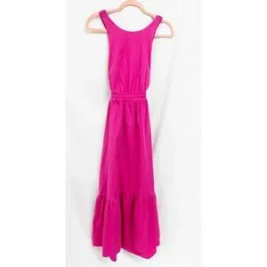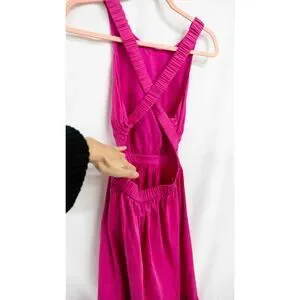 Peter Som Hot Pink Tiered Barbiecore Cross Back Semi Formal Summer Midi Dress 6