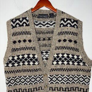 Vintage Peter England Sweater Vest Knit Mens L Wool Blend Button Grandpa