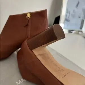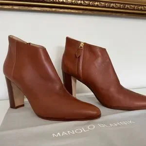 Manolo Blahnik Brusta Brown Leather Ankle Boots