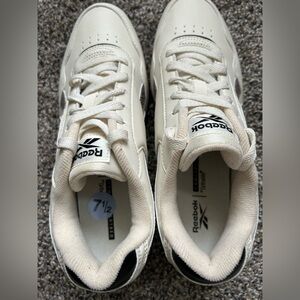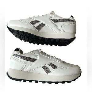 NWT Stylish Reebok sneakers in cream with leopard print accents. Perfect for casual wear. Comfort footbed and ortholite insole. Platform on bottom adds a little height.