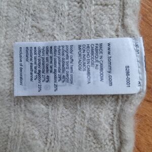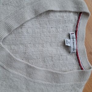 Tommy Cable Knit Cream Sweater Wool Blend V Neck, Size S