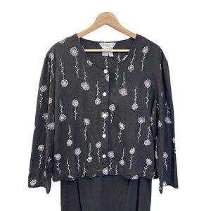 David Brooks Petites Vintage Black Linen Floral Embroidered Skirt Set Dress