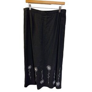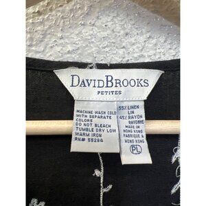 This David Brooks Petites vintage black linen skirt set dress is adorned with white floral embroidery. Ideal for size PL, boasting elegance and style. Excellent preowned condition!