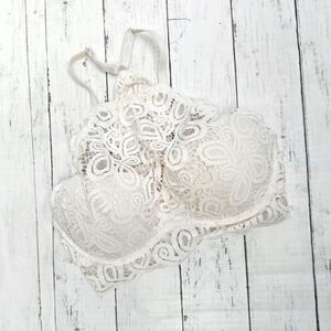 Victoria's Secret PINK Cream Floral Pattern Lace Push Up Halter Bra Bralette