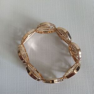 TAGS: Metal/Roses/Rose/Elastic/Fashion Jewelry/Stretchy/Statement/Gold Tone/Elasticized/Flower/Floral