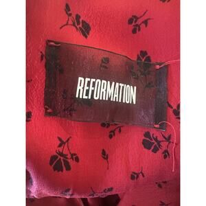 Reformation Red & Black Floral Print Mini Dress Bell Sleeve Ruffle Women's Large