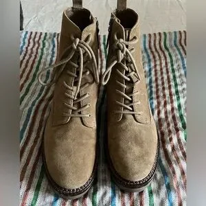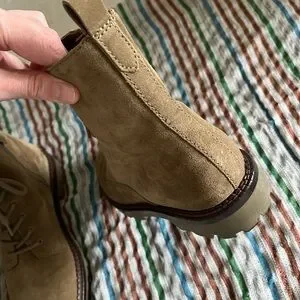 VINCE Cabria suede lug boot in dark clay sand beige, size 9. EUC