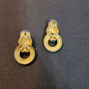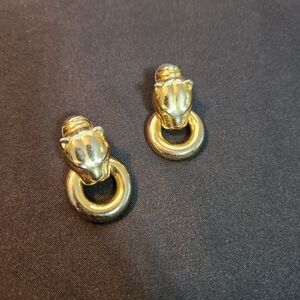 Vintage Heavy Enamel Goldtone Panther Lion Knocker Dangle Earrings