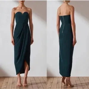Shona Roy U Wire Strapless Bustier Tulip Midi Dress in Seaweed Green Size 4