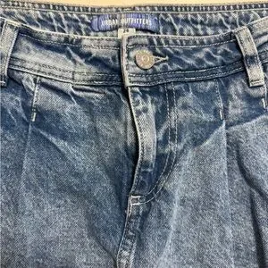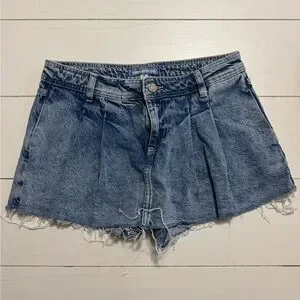 Medium wash Urban Outfitters Jean Skort, pleated skirt on the front and shorts look on the back. Has a raw hem. No flaws and no stains