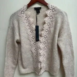 NWT House Of Harlow Elegant Beige Lace Trim Sweater Cardigan