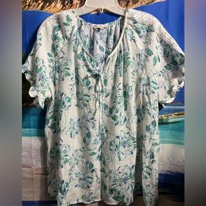 Como Vintage Gauze Lightweight Lace Ruffle Floral Top
