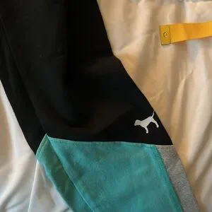 Waist 14 inches laying flat,stretches for more.27 inch inseam.black and blue sport leggings size small.Has some piling on inside of the waist at the top.Not any on the outside.So cute