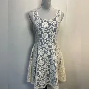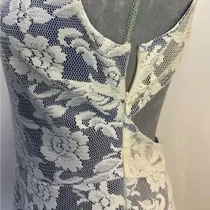 #0139 Love Culture Off White Lace Overlay Royal Blue Lining Cut-out Back Dress-L