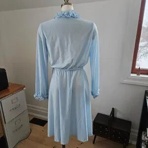Vintage 1970s Sheer Blue Ruffle Dress | Faux Wrap & Stretch Waist