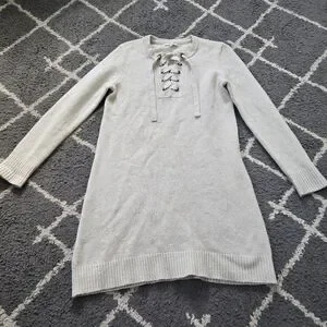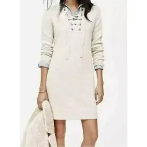 Madewell Merino Wool Long Sleeve Lace Up Front Cream Oatmeal Sweater Dress M