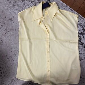 Stylish sunshine yellow button front blouse with short sleeves. Ideal for versatile styling.