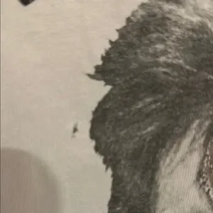 Size small with glitter effect on his forehead. Distressed through out and one of a kind like all MadeWorn items.
