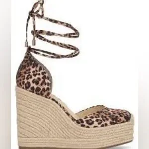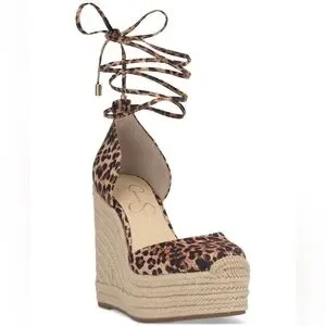 These playful wrap-lace wedges by Jessica Simpson feature braided espadrille heels for a natural look.