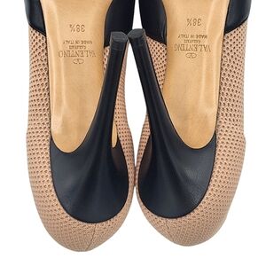Valentino Garavani Rockstud Leather and Knit Sock Booties/ Studded Pumps. Color: black, nude. Size: EU 38.5 (fits like US 8). Made in Italy.