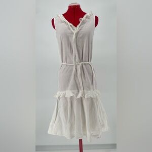 Vintage Crisp White Drop Waist Midi Dress With Neckline Ties & Tie Belt
