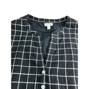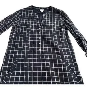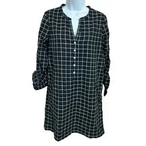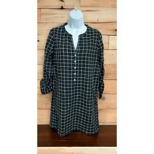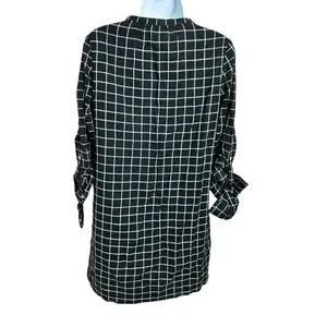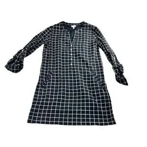 Soft Joie Iselyn Black Plaid Shirt Dress Sz XS Long Roll Tab Sleeves Above Knee