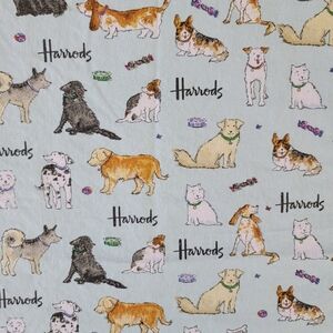 Harrods Light Blue Dog Pet Bandana Handkerchief Dog Breeds Cartoon 18" X 27.5"