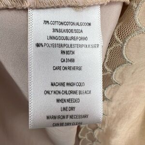 Material: 70% Cotton, 30% Silk, 100% Polyester lining. Lightweight woven material with no stretch. Outer layer is semi-sheer