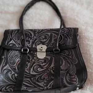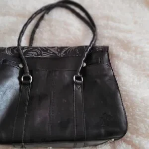 Patricia Nash Black Shoulder Bag with Elegant Silver Accents