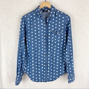 BDG URBAN OUTFITTERS Long-Sleeve Chambray Polka Dot Button-Down Denim Shirt Small