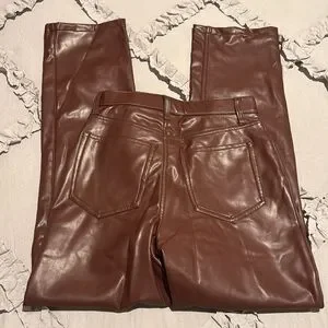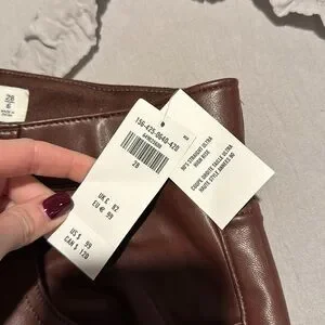 new with tags never worn abercrombie & fitch faux leather brown pants 90’s straight ultra high rise size 28