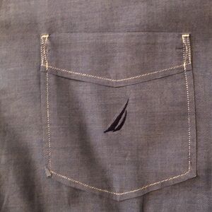 Deal of a lifetime 6 mens long sleeve dress shirts all dry cleaned in excellent condition. Blue and white stripes, blue and white checks, navy blue, light blue, denim blue and blue and purple and white striped. 16 1/2 34/35 sleeve length. Untuckit XL runs small and Roundtree and York Lg. Selling all together. All fits the same person.