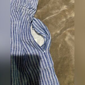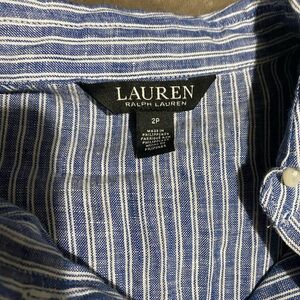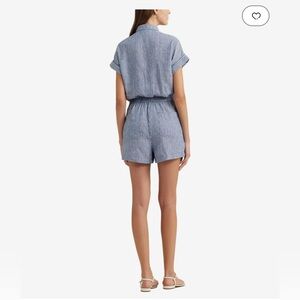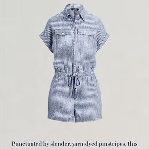 Lauren Ralph Lauren Pinstripe Linen Shorts-Sleeve Romper size 2P. Garment in good used condition.