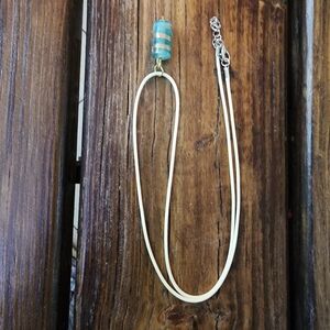 Handmade Beige cord Necklace with aqua clear and gold bead