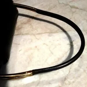 Gorgeous cocoa brown leather city handbag w brass details.