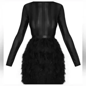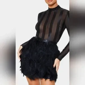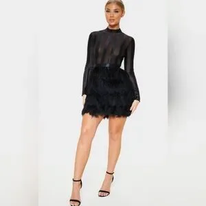 New without tags PrettyLittleThing Black Feather Bottom Dres.