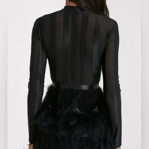 Elegant and stylish, this black sheer striped top with feather bottom is perfect for any occasion. The sleek design offers a modern look. Size 4
