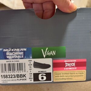 NIB. Skechers Cleo Flex Wedge - Flipside shoe. This Stretch Fit skimmer flat features an engineered textured knit upper with a knit trim, cushioned Air-Cooled Memory Foam insole and a 1 1/4” low wedge heel.